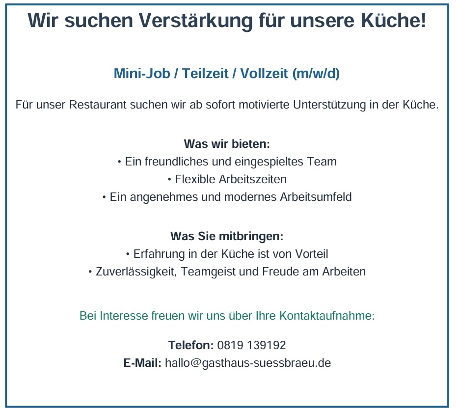 Warme Küche bis 21 Uhr oder nach Vereinbarung